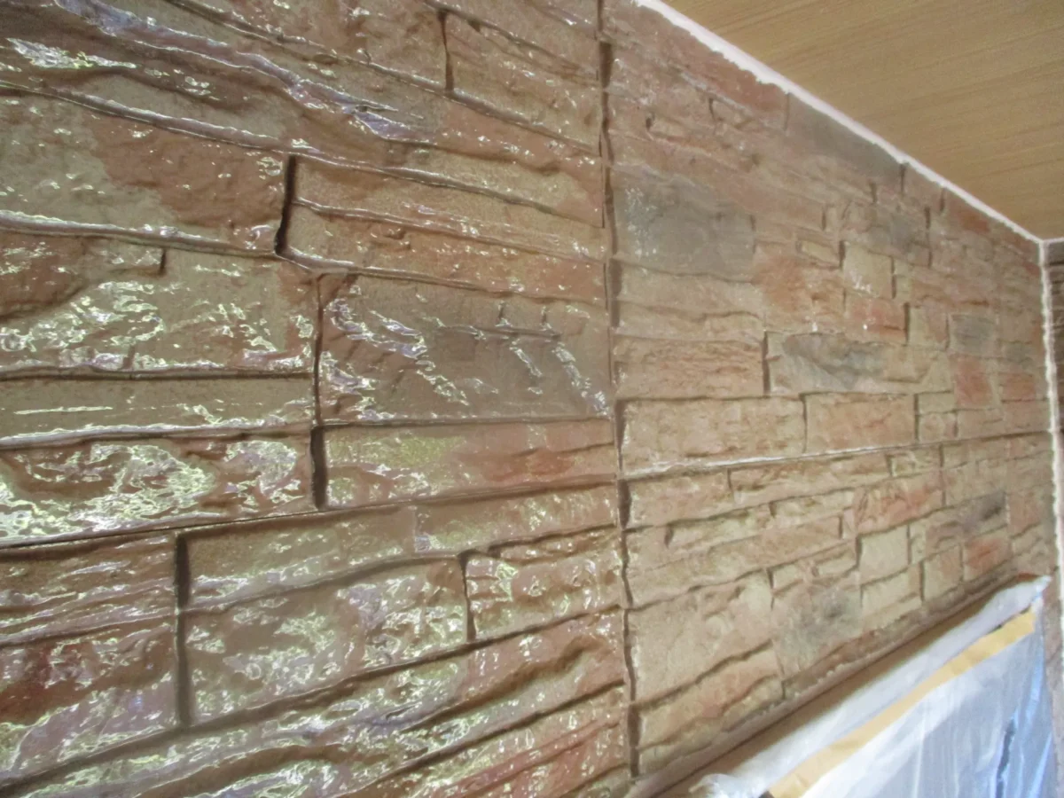 クリアー塗装は、元の基材色に、深みのある艶をだす無色透明の耐候性ももたらす塗料になります。過去に既設のシーリング色に合わせ、打ち替えした時に、クリアー塗装をしたら、先打ちしたシーリング色に違和感を感じた事例があった為、既設の外壁材が深みのある艶になる事を考えシーリング色を選定。