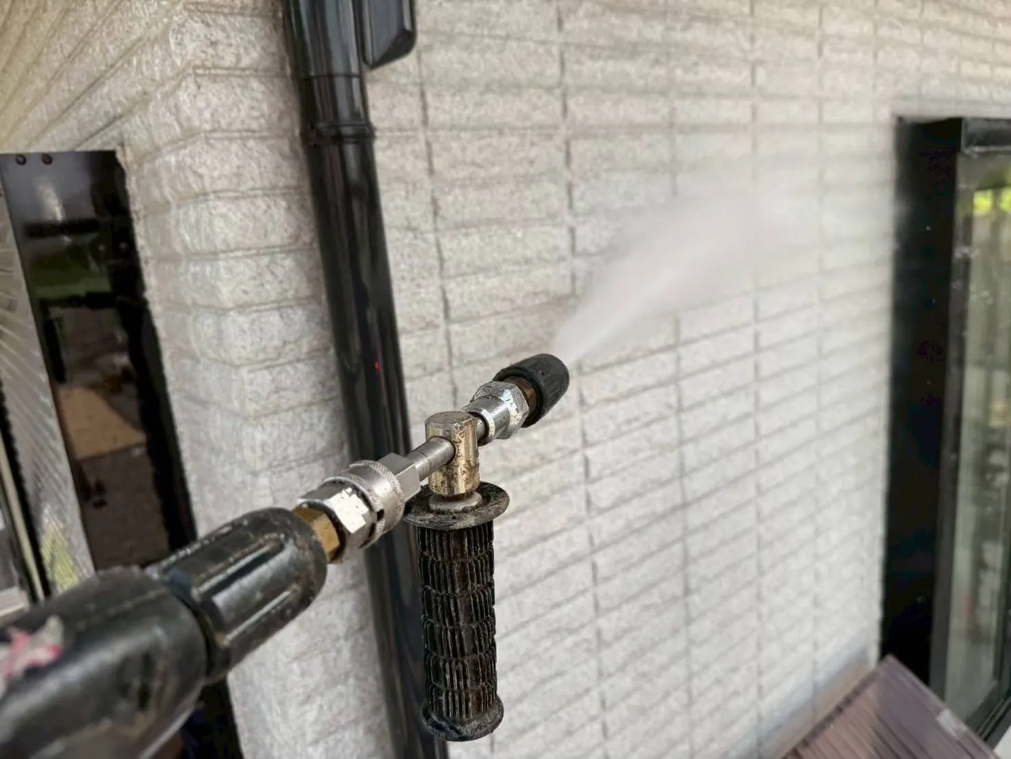 山梨県中央市にお住いのI様は、もともとお住まいに拘りをもたれており、新築時にも拘りの多彩模様の外壁色を選ばれておりました。その為、経年劣化が目立ち始めても、今の塗装が変わってしまう事をためらい、なかなか外壁の塗り替えに手を付けられずにいましたが、住まいるで以前、施工させていただいたお客様の知り合いという事もあり、今回、ご相談をうけました。各、塗料メーカーの商品を比較させていただき、気に入っていただける多彩模様色のご提案と、同時に外壁に細かいクラックなどが見受けられた為、一緒に補修できる方法を併せてご提案させていただきました。