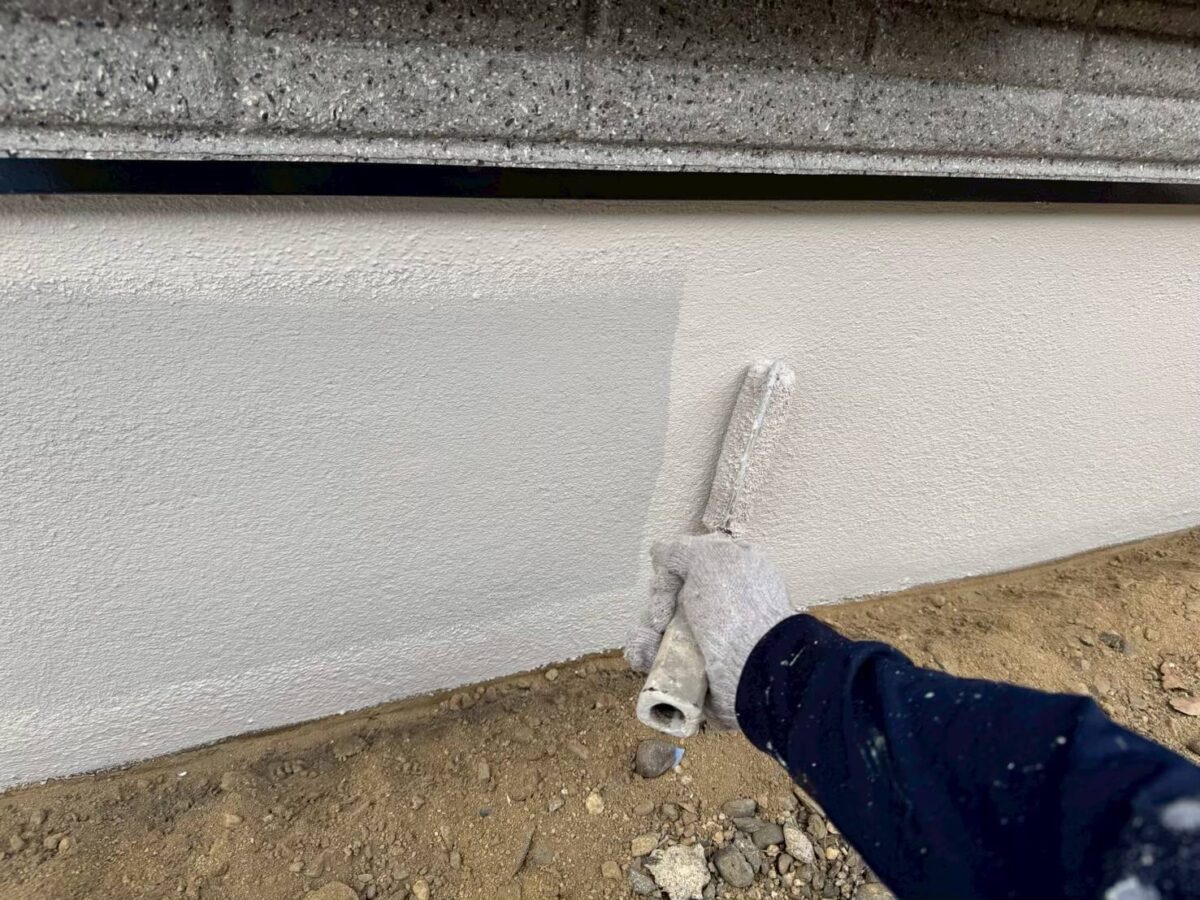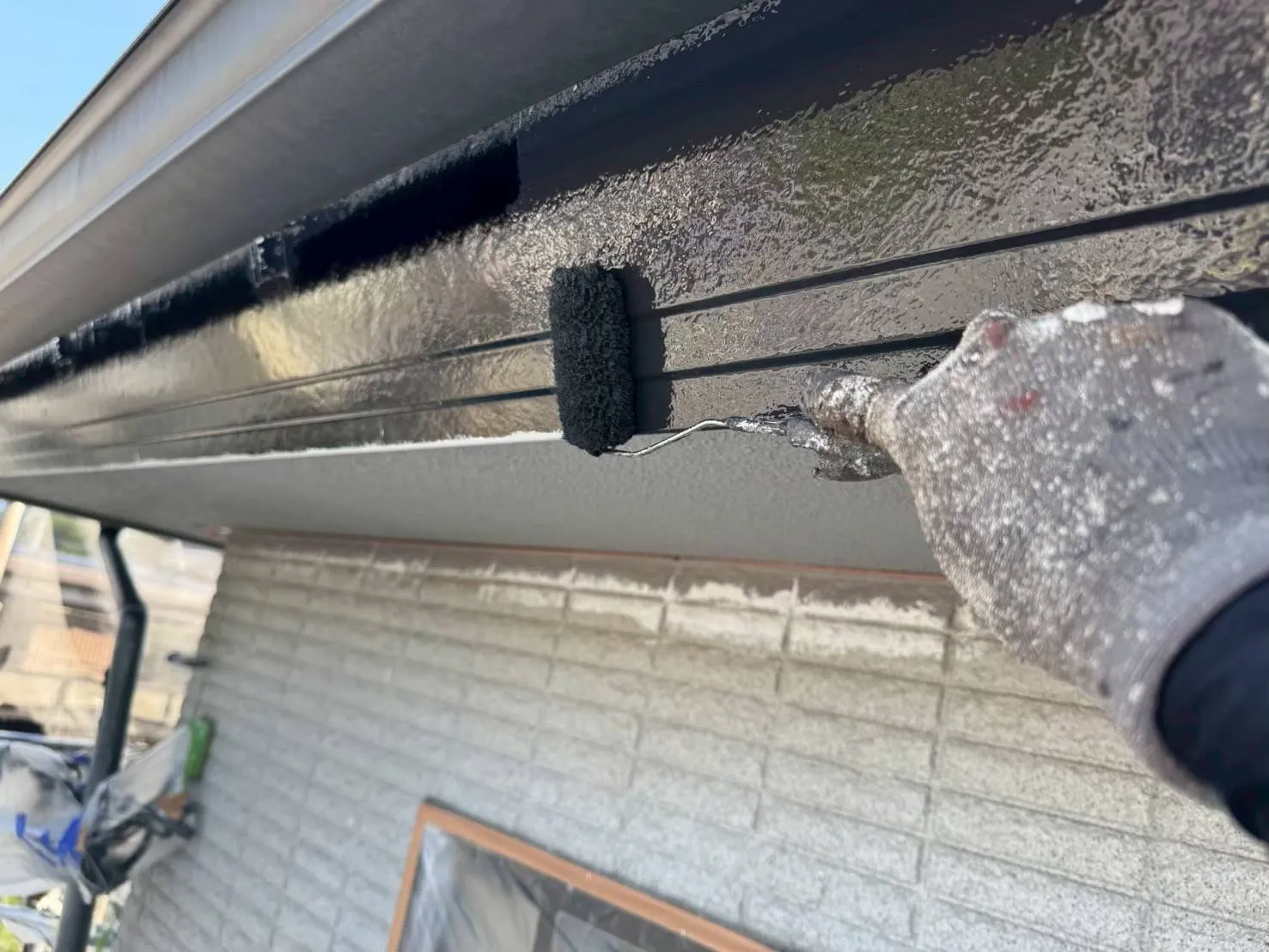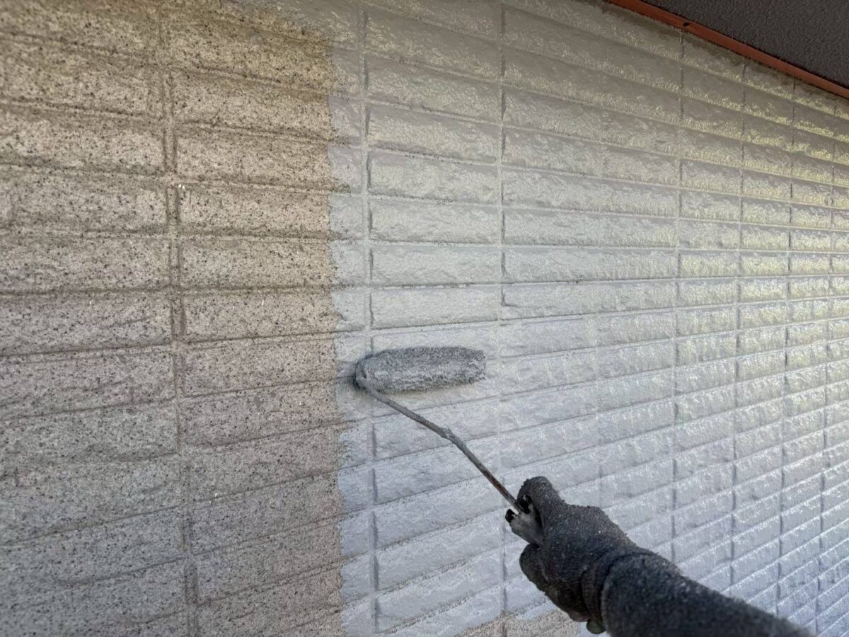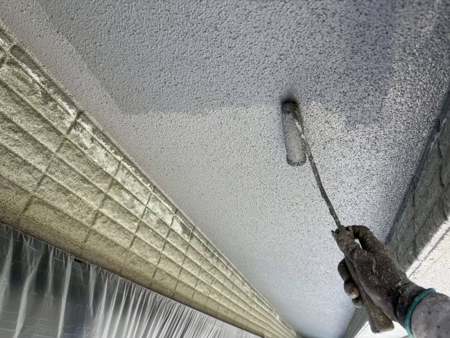 塗装には、刷毛塗や、ローラー塗り、吹付けなどがありますが、今回、使用しました塗料は、最終上塗りが、吹付け仕上げの為、細心の注意をしながら仕上げ塗装を行いました。