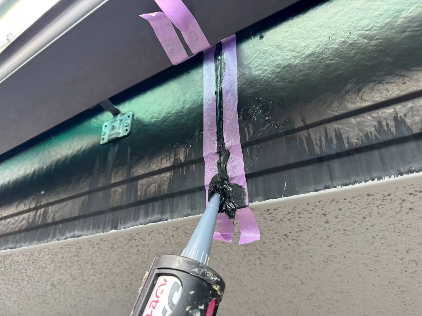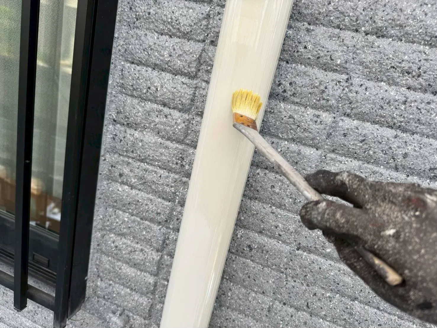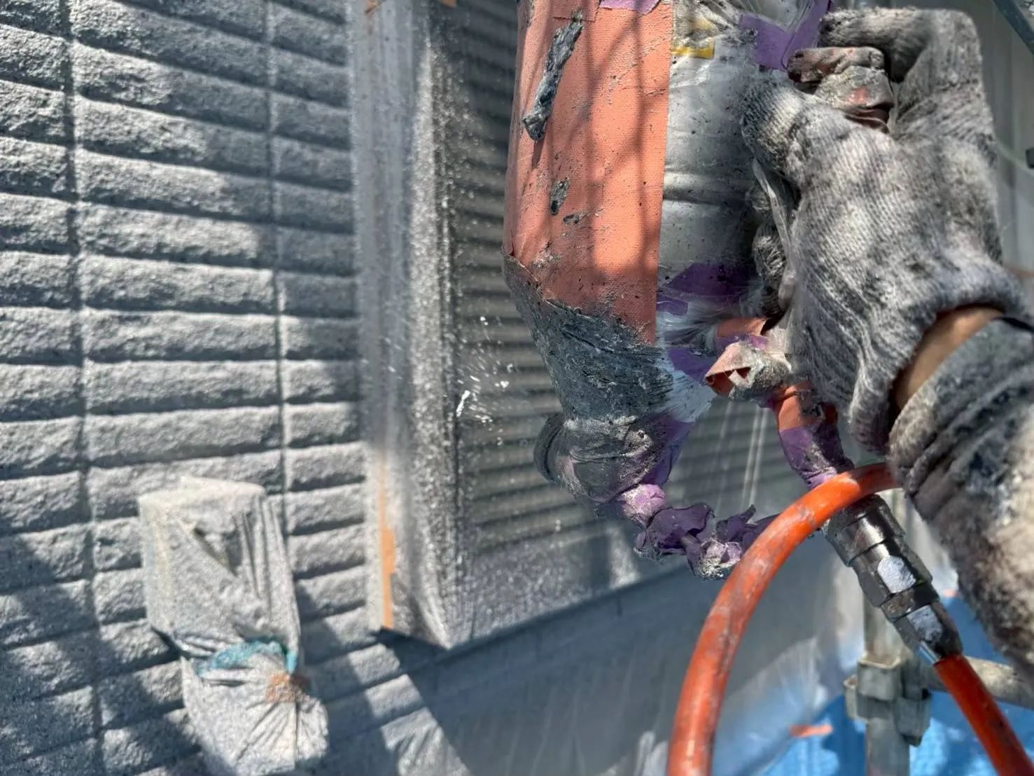 塗装には、刷毛塗や、ローラー塗り、吹付けなどがありますが、今回、使用しました塗料は、最終上塗りが、吹付け仕上げの為、細心の注意をしながら仕上げ塗装を行いました。